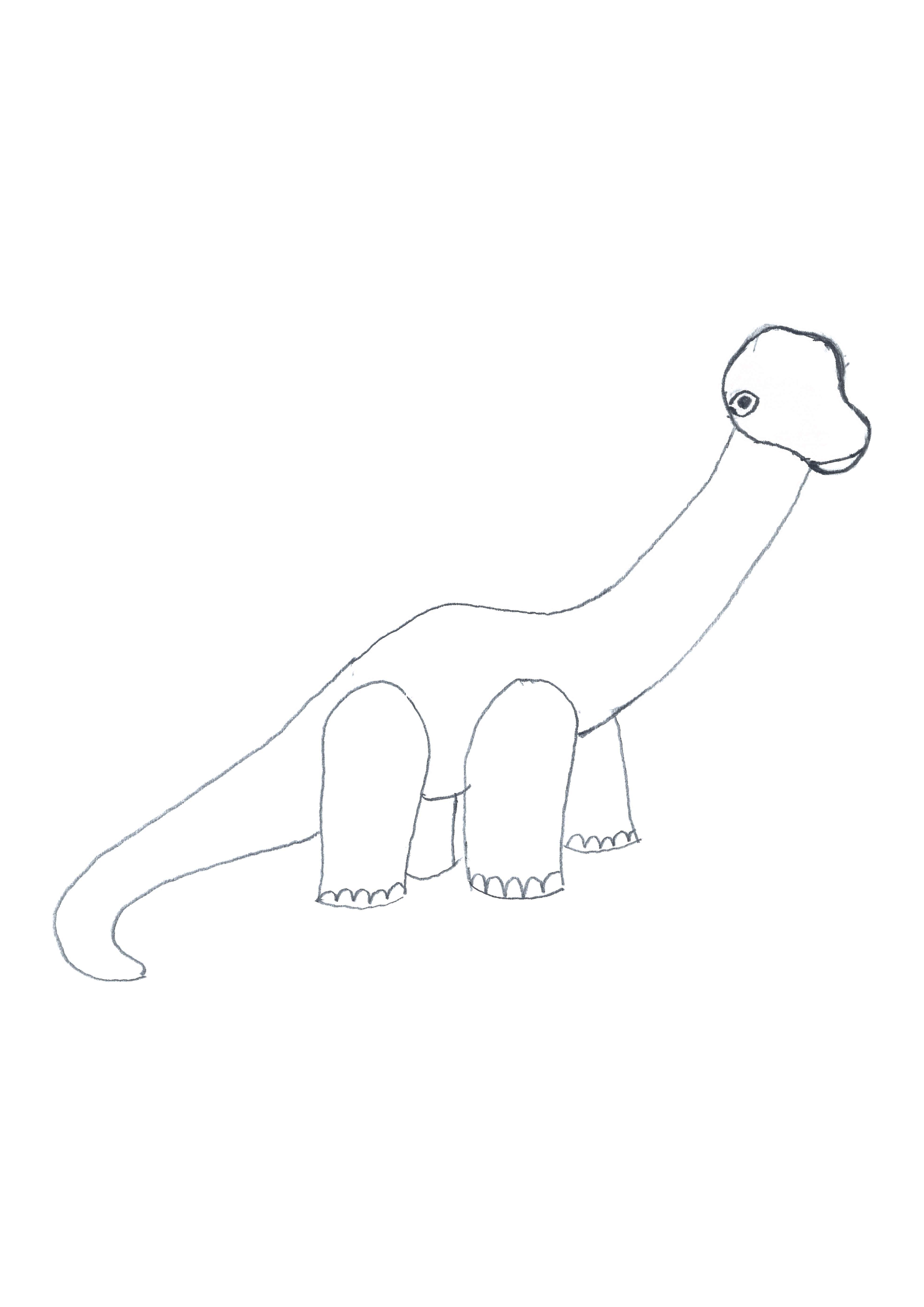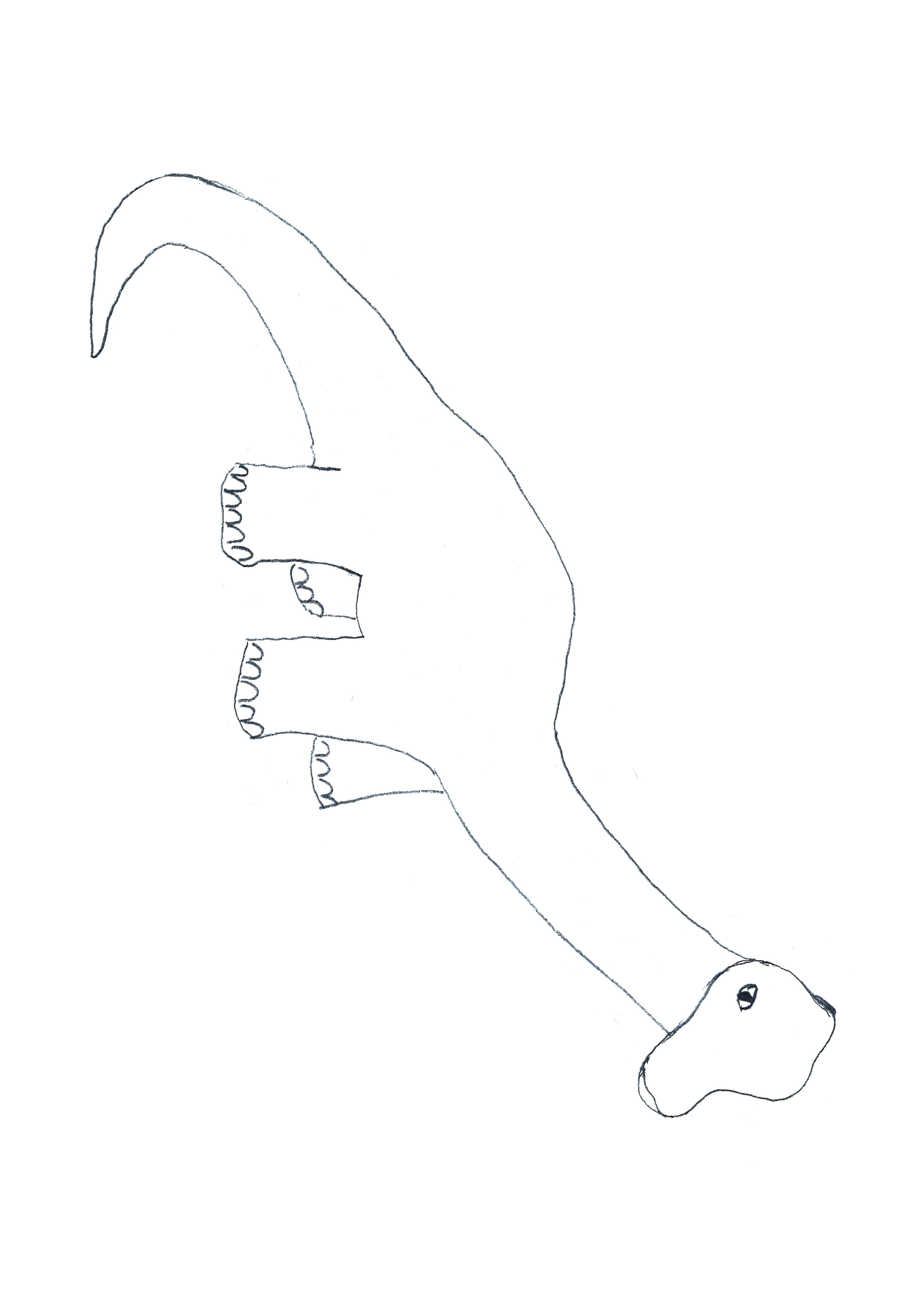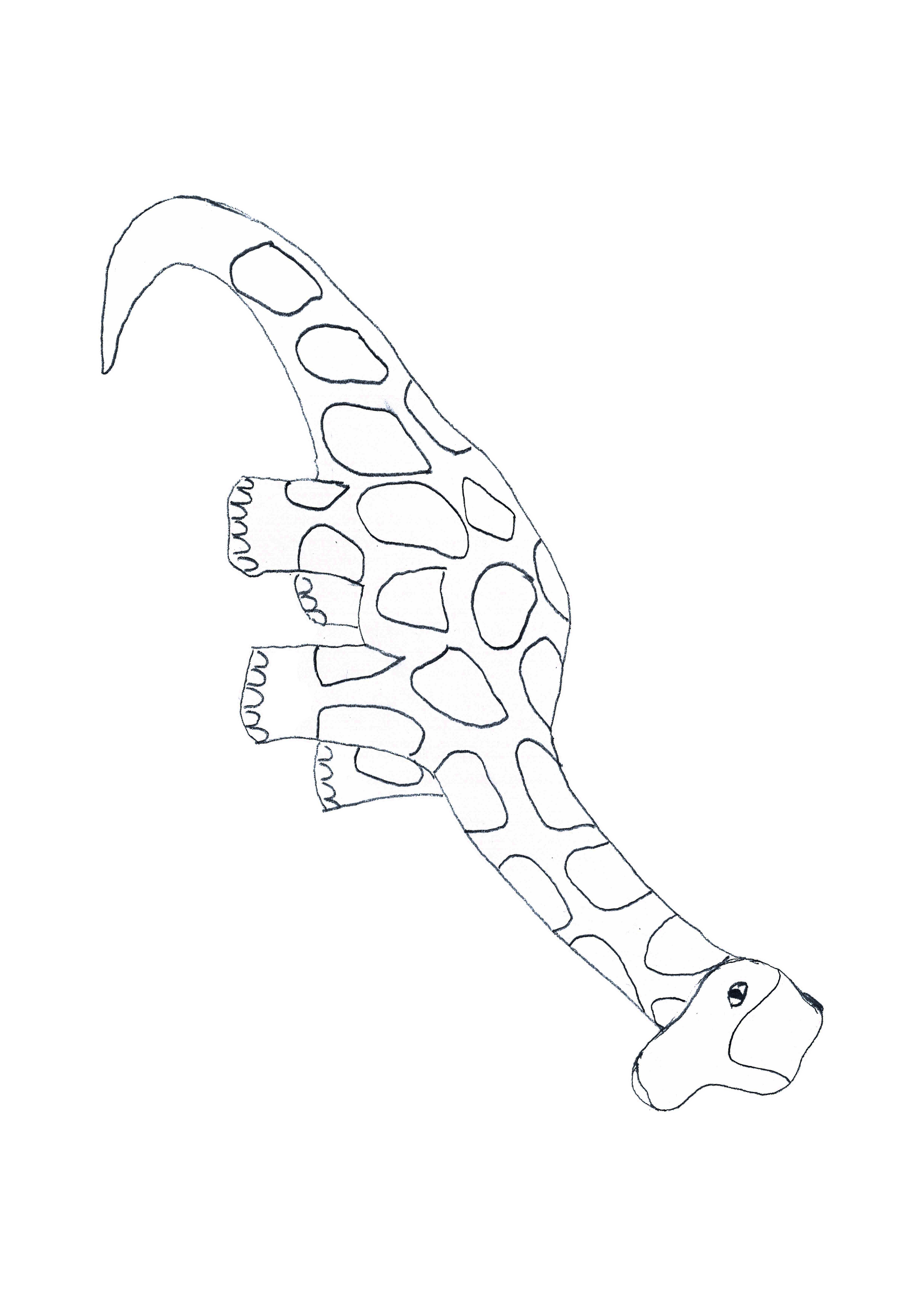 Die Gestaltung des Dinos wird in eine Geschichte verpackt und so zu einer Erzählung über die farbenfrohe Gefühlswelt des Dinos verarbeitet.